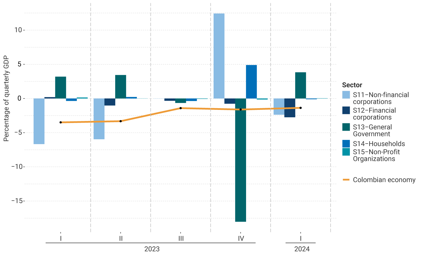 Graph 5. Colombia’s Net Financial Position by Institutional Sector, 2023-1 –2024-1