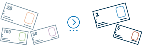 Recibir billetes de alta denominación en cualquier estado (aptos o deteriorados) y entregar a cambio el valor equivalente en billetes aptos de baja denominación o moneda metálica de cualquier denominación.